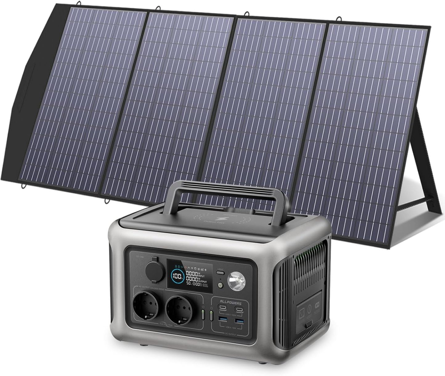 ALLPOWERS Stazione Energetica Portatile R600 con Pannello Solare 200W, Batteria LiFePO4 299Wh 600W, Uscite AC, UPS per Campeggio e Viaggi